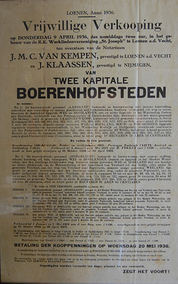 Er werden 2 boerderijen geveild bij openbare verkoping uit de nalatenschap van de familie Blijdenstein uit Loenen, een boerderij in Laag Nieuwkoop en aan de Nigtevechtseweg in Vreeland.